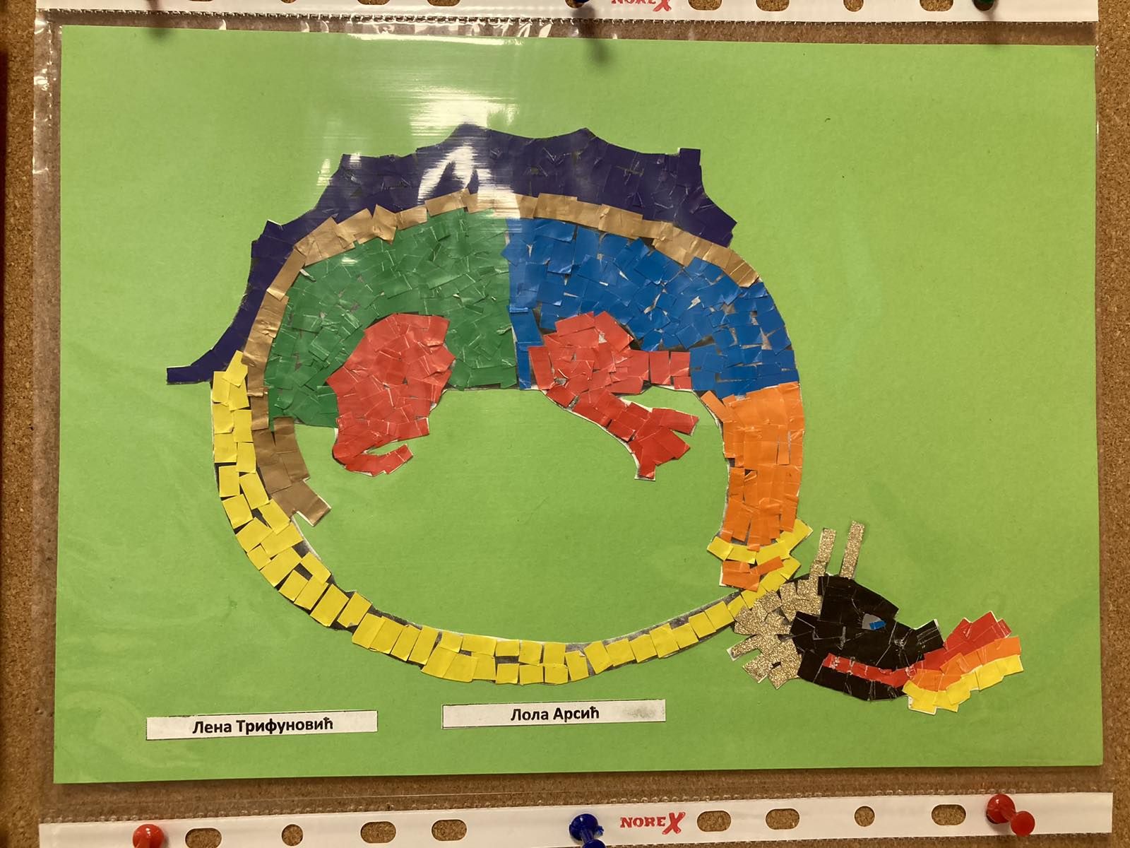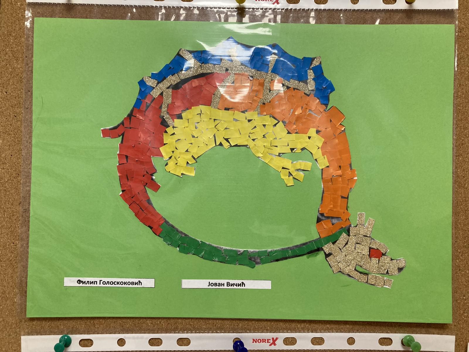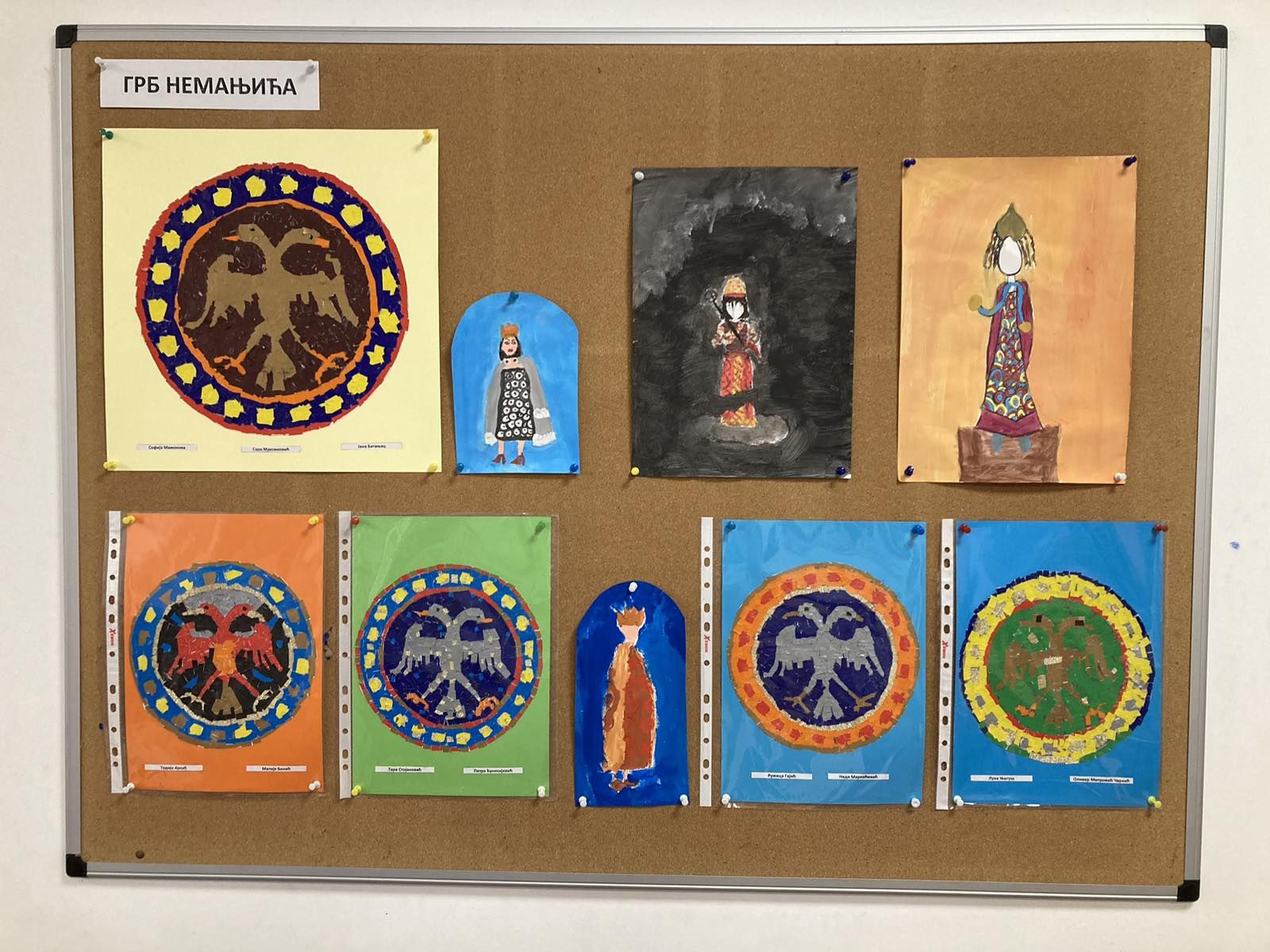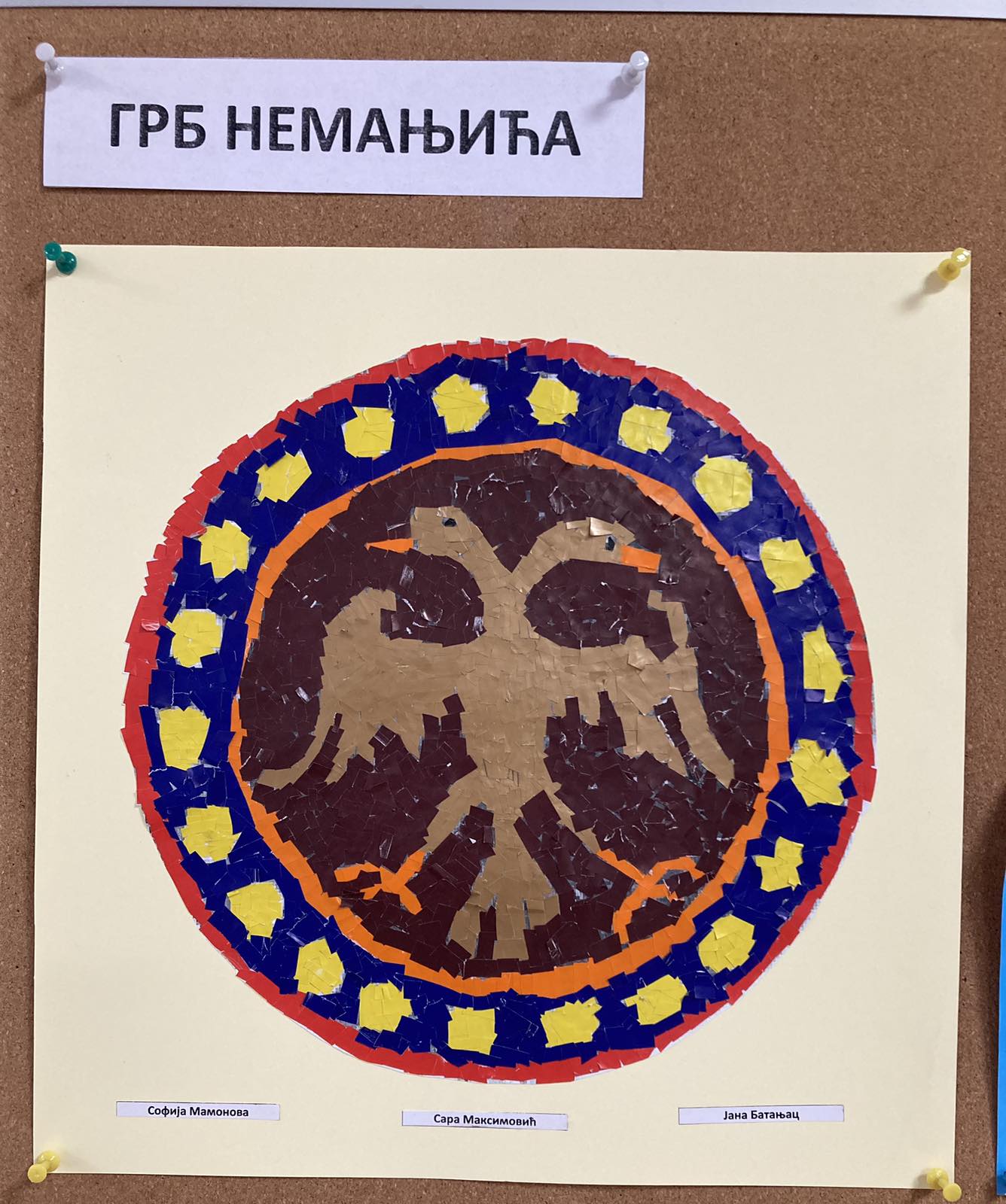 Ученици 4-1 са својом учитељицом Љиљом Вуковић Стајић, направили су права мала ремек дела, мозаик грба Немањића и симбола Витешког реда Змаја.