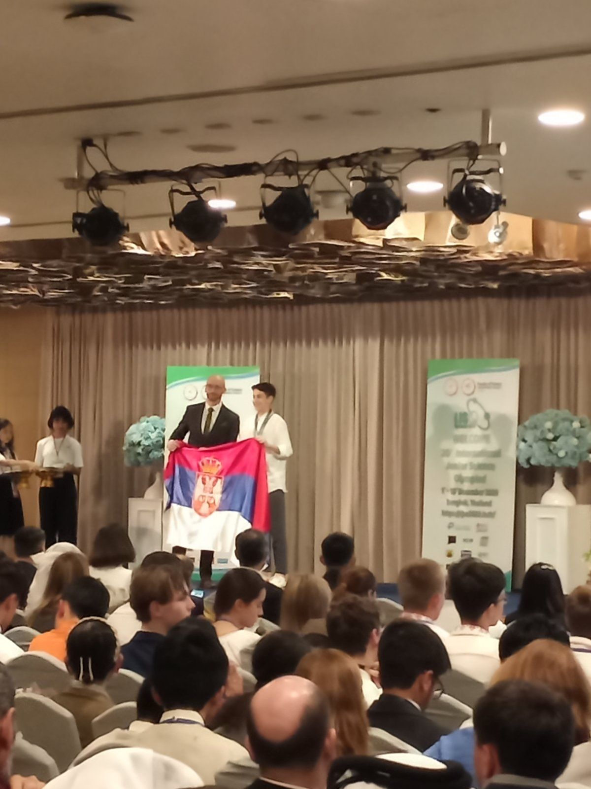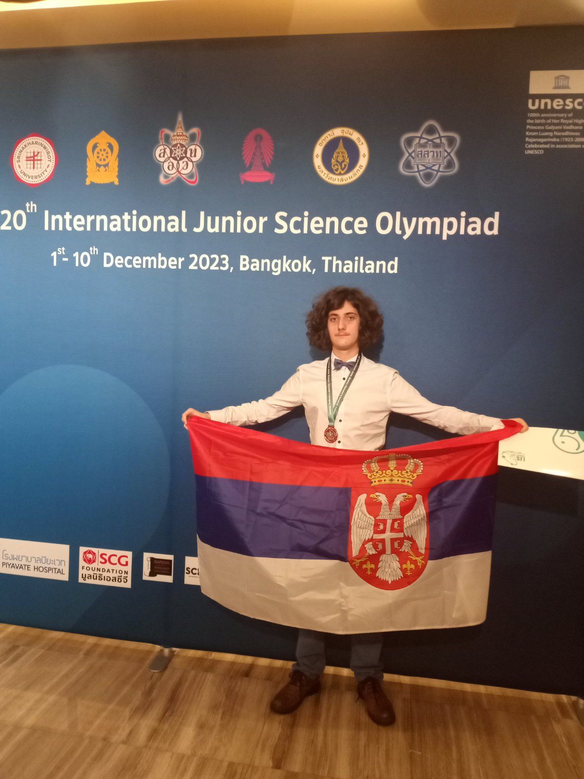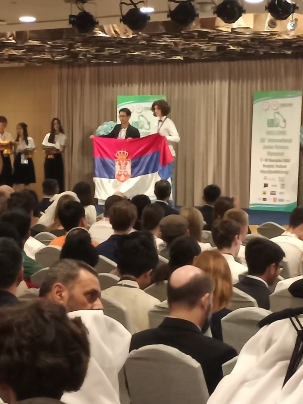 Стефан Секулић Дердовски, Лука Смиљанић и њихова наставница Маја Мутић су били део тима који је Србију представљао на Интернационалној јуниорској научној олимпијади која је одржана од 1.12. до 10.12.2023. у Бангкоку на Тајланду. Вредни и талентовани „Душковци „ ( сада ученици Математичке гимназије ) су након школског, општинског, градског и државног такмичења, у претходној школској години, освојили и највише позиције на Српској физичкој олимпијади, одржаној 11. и 12.5. 2023. и на Изборном такмичењу, одржаном 29.9.2023., што их је квалификовало за учешће на Олимпијади на Тајланду. Такмичење је изузетно захтевно јер се одвија у три сегмента, са даном паузе између сегмената. Ученици први дан такмичења раде рачунске задатке, онда је дан за решавање теоријских проблема и последњи дан је израда експерименталних задатака. На Олимпијади су учествовали ученици из 60 држава ( 5 или 6 најбољих ученика представља своју државу ) и у таквој конкуренцији Стефан Секулић Дердовски је освојио сребрну а Лука Смиљанић бронзану медаљу.