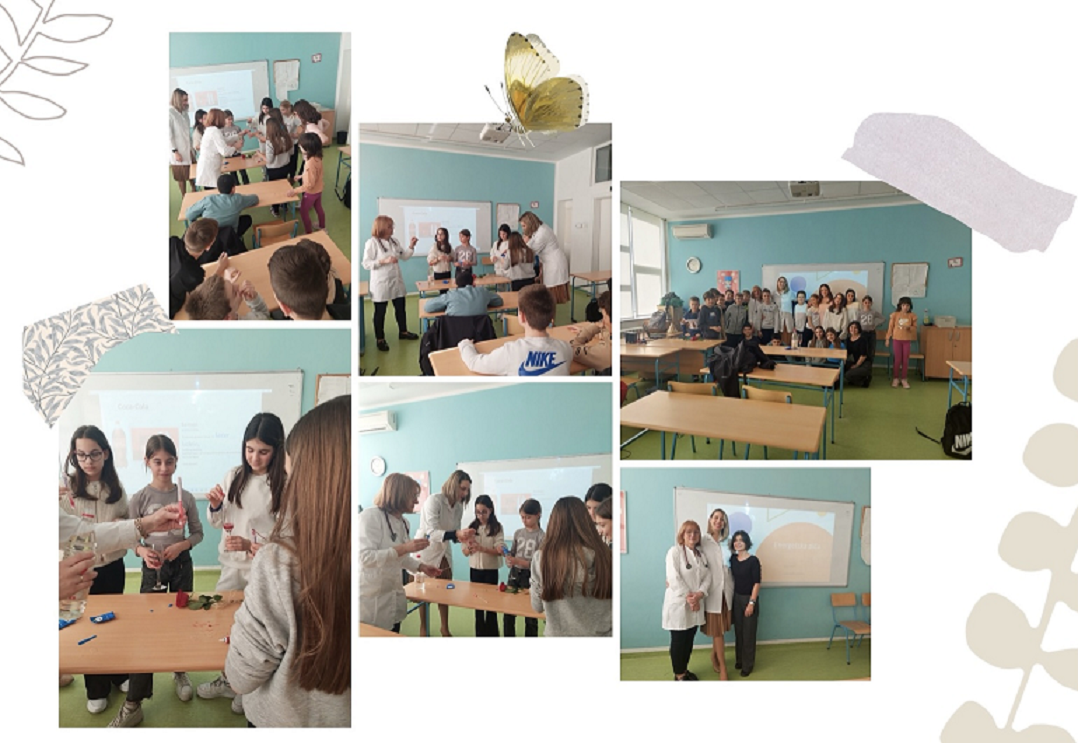 У среду, 28.2.2024. почела је реализација идеје која је изнета на родитељском састанку 5/1, а односи се на учешће родитеља у школским активностима и дружење родитеља и ученика кроз организовања разговора, радионица и предавања. Тог дана су у госте одељењу 5/1 дошле две маме, које су ученицима одржале предавање о енергетским пићима. Мама Сања Костић, лекар – специјалиста интерне медицине и мама Александра Кнежевић, магистар фармације, су кроз интересантну презентацију, причу и интеракцију са децом упознале ученике са карактеристикама популарних енергетских пића и њиховим штетним утицајем на здравље. Заједно са децом извеле су експеримент, који показује како настаје пенушање уз мехуриће и ослобађање угљен-диоксида. У експерименту су користиле соду бикарбону, сирће и боју за колаче како би деци показале како настају пића атрактивне боје. Задовољство и осмеси мама,ученика и разредног старешине током дружења показали су да је дељење најбољи начин развијања лепих односа.