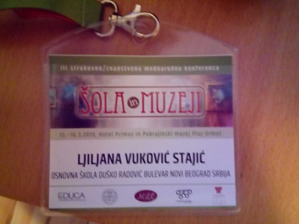 III струковнa/научна међународна конференција Школа и музеји је одржана у Птују 15. и 16. марта 2019. године. Учитељица Љиљана Вуковић Стајић је била један од предавача. Предавање је носило назив Школе и музеји на истом задатку. На примерима из праксе показано је повезивање школе и музеја кроз теме које се налазе у Плану и програму за III и IV разред основне школе. Указано је на важност сарадње школa и музеја у савладавању одређених знања и стицању вештина по предметима који су обавезни или изборни. Представљено је шта се то данас организује и на који начин се организује за децу основно-школског узраста у Београду. Изнето је лично искуство кроз које се може стећи утисак како учитељи користе понуђено да би унапредили свој рад и на тај начин својим ученицима учење учинили занимљивим.