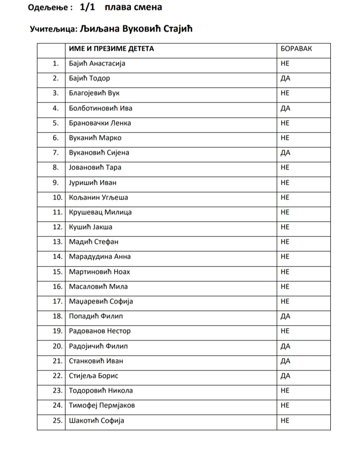плаве смене који долазе на наставу пре подне у 8 часова,