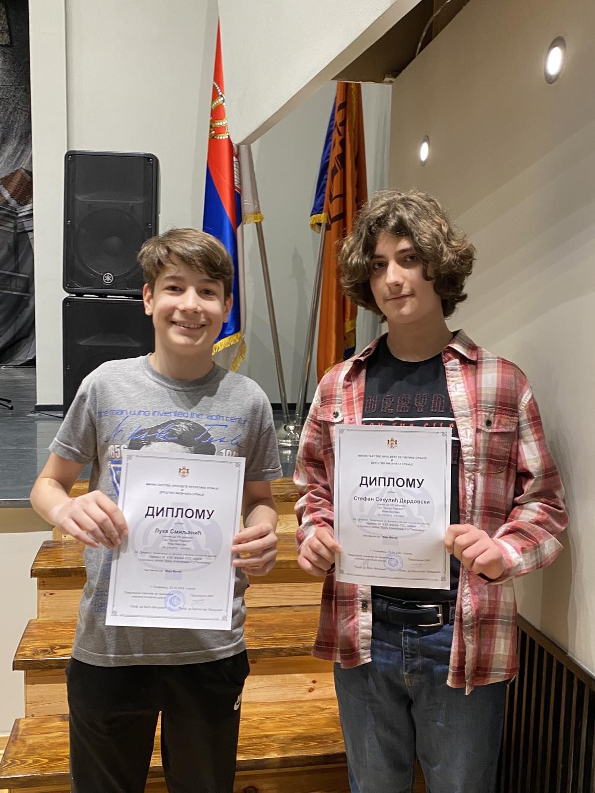 Лука Смиљанић и Стефан Секулић Дердовски, ученици наше школе, постигли су невероватне успехе на државним такмичењима из физике и математике на Српској физичкој олимпијади, као и на такмичењима из информатике и хемије.